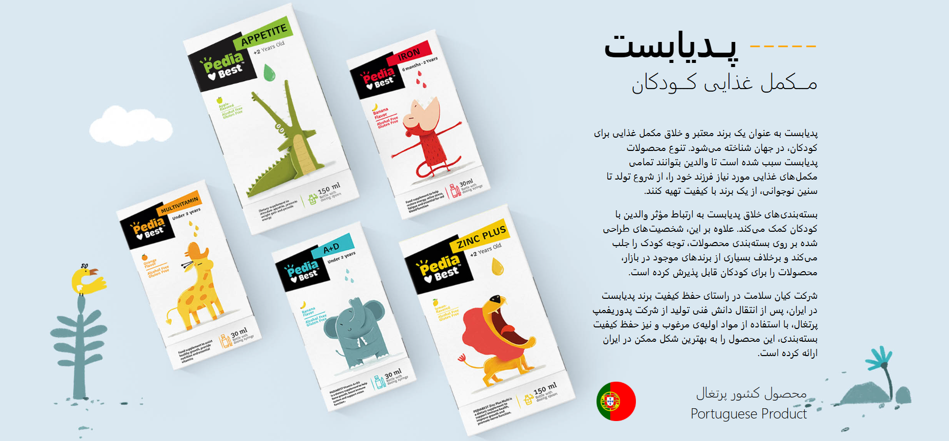 برند پدیابست (Pediabest) به عنوان یک برند معتبر و خلاقانه در حوزه مکملهای غذایی کودکان در سطح جهانی شناخته میشود. محصولات این برند در ایران توسط شرکت کیان سلامت پایدار (Kian Salamat Paydar) تولید میگردد که دانش فنی تولید را از شرکت پدوریفامپ (Pedorifamp) پرتغال اخذ کرده است. این شرکت ایرانی با تمرکز بر حفظ استانداردهای کیفیت و بستهبندی اصلی، از مواد اولیه مرغوب استفاده میکند و فعالیت خود را بر تولید مکملهای گیاهی و ویتامینی برای کودکان از تولد تا نوجوانی آغاز نموده است. پدیابست با بیش از یک دهه حضور در بازار ایران، به سرعت به یکی از برندهای محبوب برای والدین تبدیل شده است.